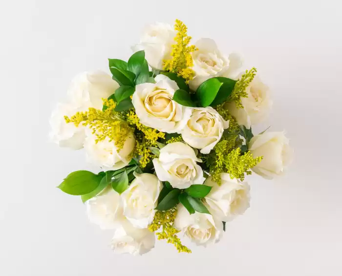 O buquê superou minhas expectativas! As 15 rosas brancas são perfeitas e a folhagem verde dá um toque especial. O arranjo é lindo e a combinação das cores é perfeita. A entrega foi rápida e eficiente. Recomendo muito!