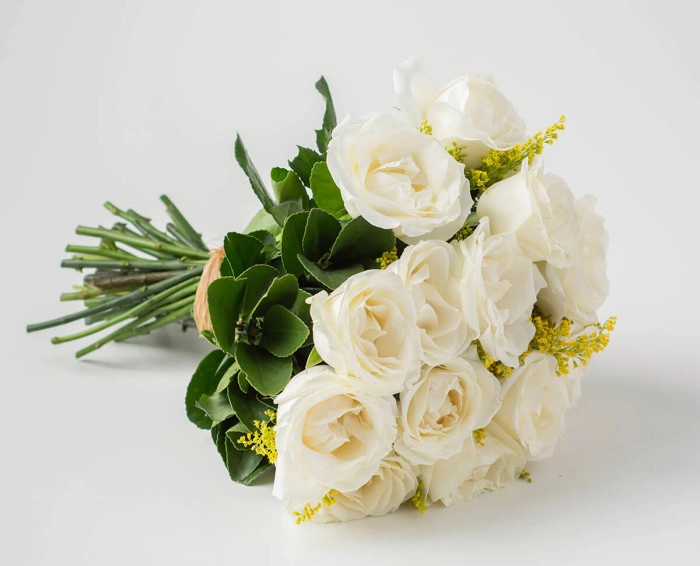 Este lindo buquê é confeccionado com 16 rosas brancas e acompanha um Espumante de 750ml. As flores são envolvidas em Ruscus e Tango com acabamento em ráfia – cada detalhe faz a diferença no presente para a pessoa querida!